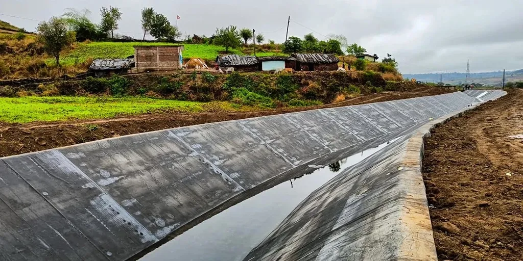The innovative solution combines composite geotextile with interlocking composite concrete plates reinforced by steel bars. This integrated system not only simplifies installation but also significantly enhances the durability and impermeability of canal linings. “The production process begins with placing a composite geotextile fabric, which serves as a filtration and stabilization layer,” explains Gajbhiye. “This layer enhances erosion control and load distribution. Prefabricated concrete plates, designed with admixtures to increase strength and durability, are then interlocked and reinforced with steel bars to provide additional crack resistance and structural stability.”