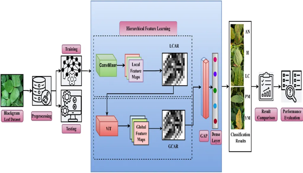 In the heart of India’s agricultural landscape, where black gram, or urad bean, is a staple crop, a new technological breakthrough is set to revolutionize disease detection and management. Researchers have developed a lightweight, yet powerful, deep learning model named ConViTSE, designed specifically to classify black gram leaf diseases with remarkable accuracy. This innovation, published in *Scientific Reports*, promises to enhance precision agriculture and bolster farmers’ livelihoods.