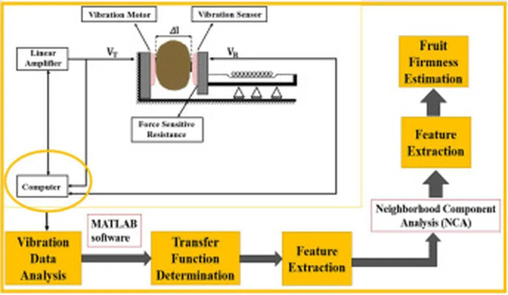 The study, led by Saman Abdanan Mehdizadeh from the Department of Mechanics of Biosystems Engineering at the Agricultural Sciences and Natural Resources University of Khuzestan in Iran, presents a predictive framework that integrates dynamic feature extraction with Neighborhood Component Analysis (NCA) for regression-based feature selection. By subjecting kiwifruit samples to 5-second vibrations, the researchers recorded acceleration and angular velocity in three orthogonal directions, identifying key features such as rise time, overshoot, and damping coefficient that are crucial for predictive modeling.