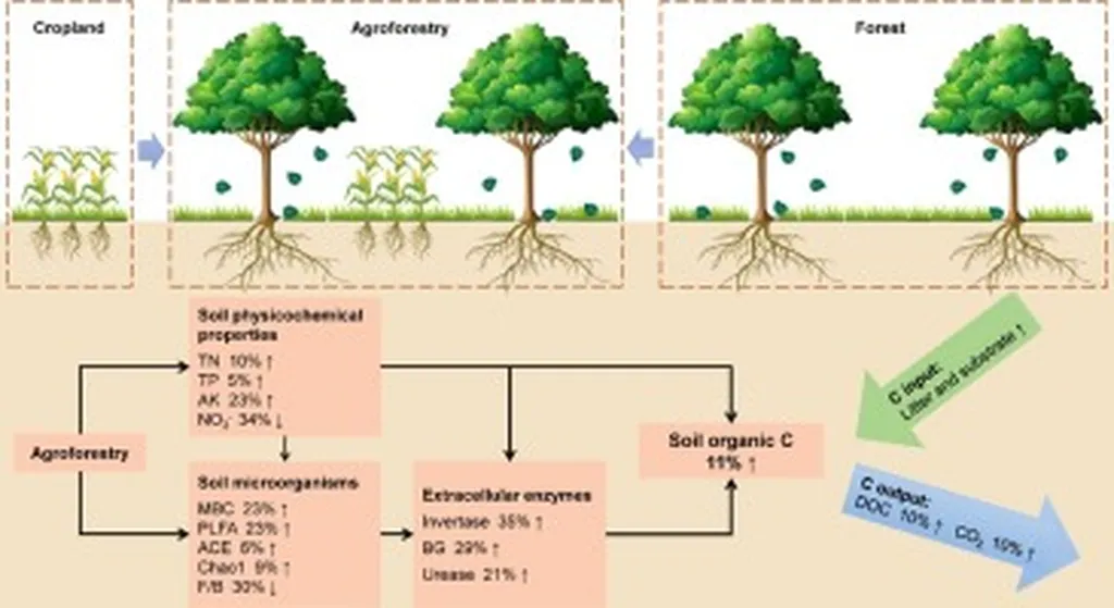 In the verdant landscapes of the Nilgiris district in Tamil Nadu, a silent revolution is brewing, one that could redefine the future of agriculture and climate change mitigation. A recent systematic review, published in *Frontiers in Forests and Global Change*, has shed light on the immense potential of agroforestry systems to sequester carbon while boosting the livelihoods of local communities. The research, led by Palanivelan Jaisridhar from ICAR – Krishi Vigyan Kendra, Tamil Nadu Agricultural University, offers a beacon of hope for sustainable agriculture and climate action.