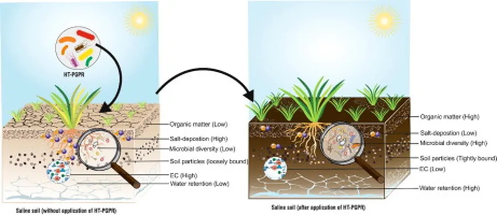 In the quest to combat soil salinity—a pervasive challenge in arid and semi-arid regions—scientists have turned to an innovative approach that combines biopolymer-based microencapsulation and halotolerant plant growth-promoting rhizobacteria (PGPB). This method not only shows promise for rehabilitating saline soils but also for enhancing crop performance, as demonstrated in a recent study published in *Carbohydrate Polymer Technologies and Applications*.