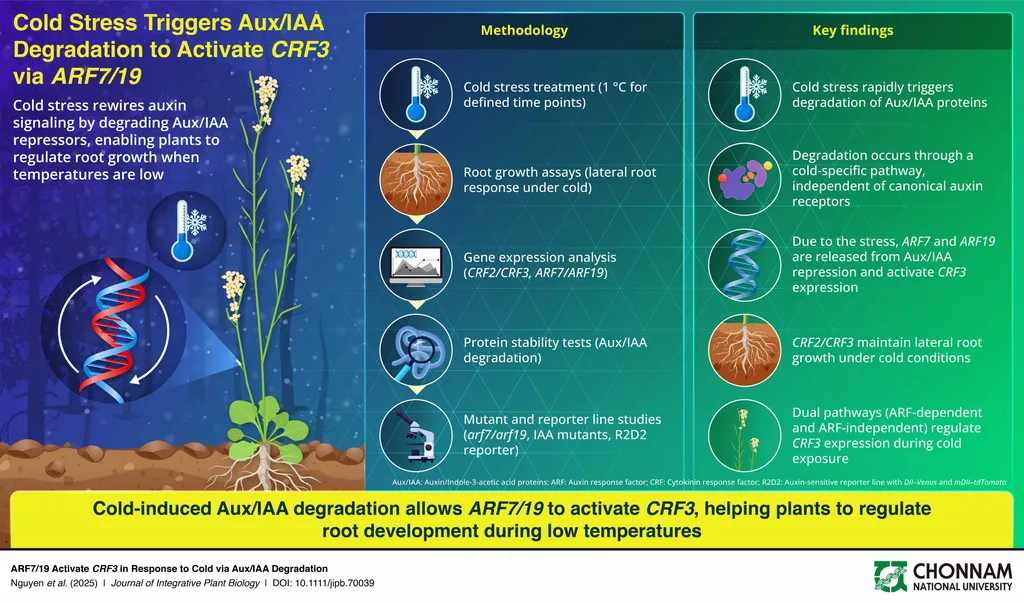 One of the most critical pathways identified in the review is the ICE1-CBF-COR genetic signaling pathway. This pathway regulates cold-responsive genes through transcription factors like C-repeat binding proteins (CBFs), which play a pivotal role in acclimatization to low temperatures. “The CBF pathway is like a master switch that turns on a suite of genes to help plants survive cold stress,” Roychowdhury notes. By deciphering this pathway, scientists can develop crops with enhanced cold tolerance, potentially boosting yields in regions prone to temperature fluctuations.