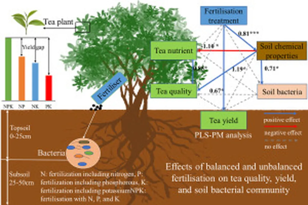 In the heart of China’s verdant tea gardens, a quiet revolution is brewing, one that could reshape the future of tea cultivation and the broader agriculture sector. A recent study published in *Chaye kexue* has shed light on the transformative potential of organic fertilizers, offering a promising alternative to conventional chemical fertilizers. The research, led by REN Hailong and a team of scientists from Huazhong Agricultural University, West Yunnan University, and the National Agricultural Technology Extension Service Center, provides compelling evidence that partial replacement of chemical fertilizers with organic ones can significantly boost tea yield and quality, while also enhancing soil health.