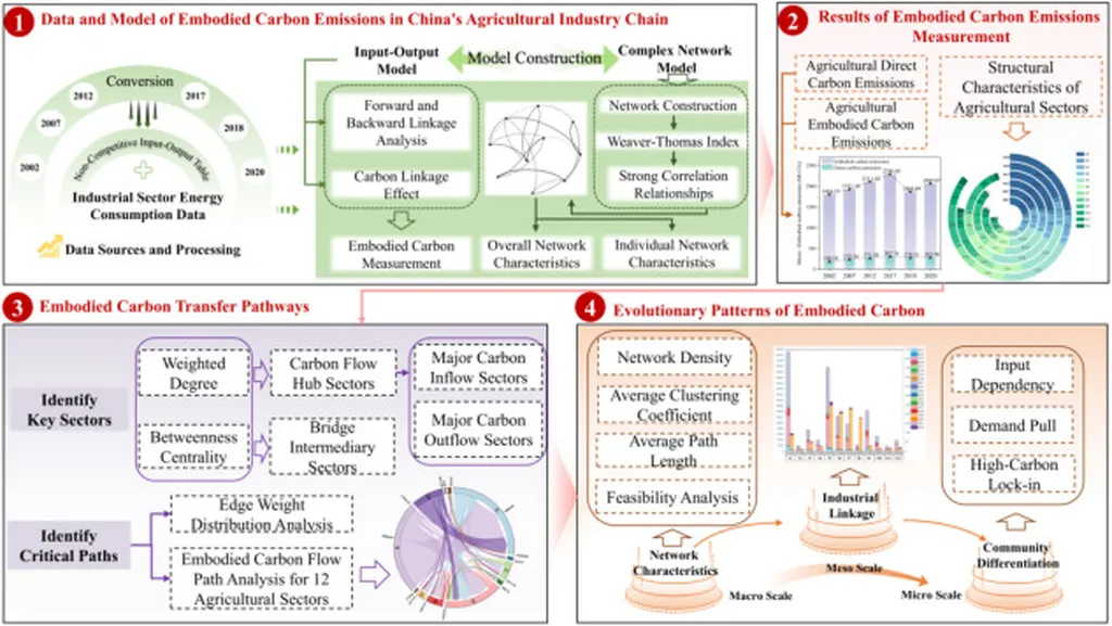 In the intricate web of China’s agricultural industry, a new study has illuminated the hidden pathways of carbon emissions, offering a roadmap for targeted emission reductions and a more sustainable future. Published in *Resources, Environment and Sustainability*, the research, led by Lehua Gao of the Marine Development Studies Institute of OUC, delves into the complex network of embodied carbon emissions within China’s agricultural sector, revealing patterns and structures that could reshape the industry’s approach to carbon management.