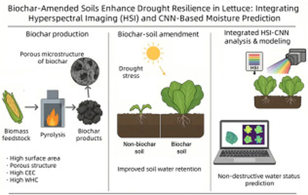 In the face of escalating drought conditions, farmers are constantly seeking innovative strategies to safeguard their crops and maintain yields. A recent study published in the *Journal of Agriculture and Food Research* offers a promising solution by combining biochar soil amendments with advanced hyperspectral imaging (HSI) and machine learning techniques to enhance drought resilience in lettuce. The research, led by Ruogu Tang from the Department of Animal and Food Sciences at the University of Delaware, presents a novel approach that could revolutionize precision agriculture and climate-resilient farming practices.